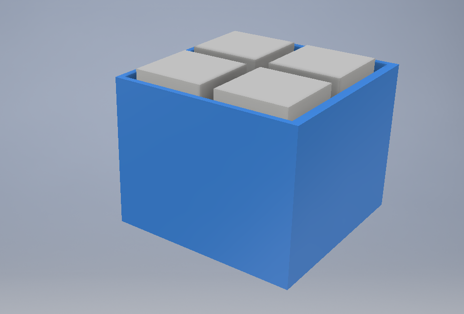 Symulacja magazynu energii cieplnej do ogrzewania domu. Magazyn składa się z sześciennych zbiorników o boku 2m wypełnionych wodą.